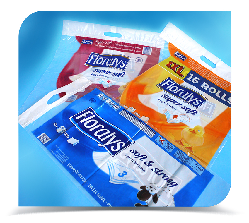 Auf der Oberseite des Beutels befindet sich eine vierfache Schicht Polyäthylen und ein gestanzter Griff.